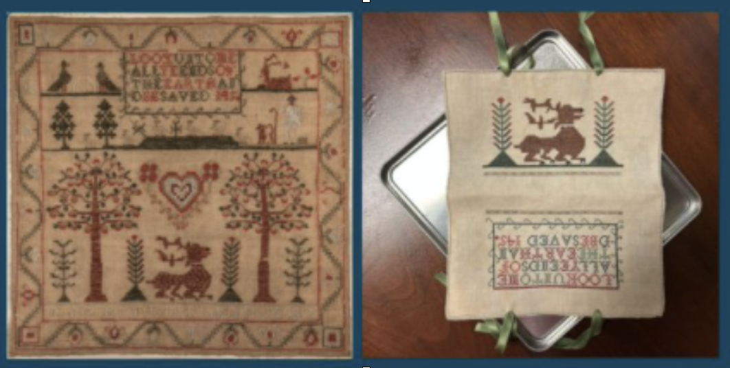 A copy of the sampler that I have reproduced for MESDA is included in the kit. Bring usual stitching supplies.