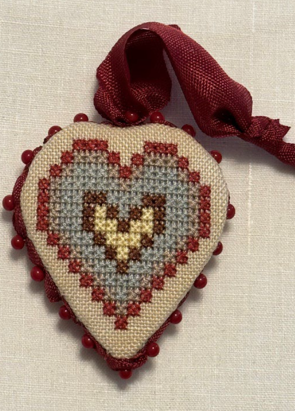 I borrowed motifs from the sampler to design this 7” W x 4”H self-lined Holdall and Pin Wheel.